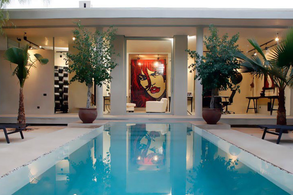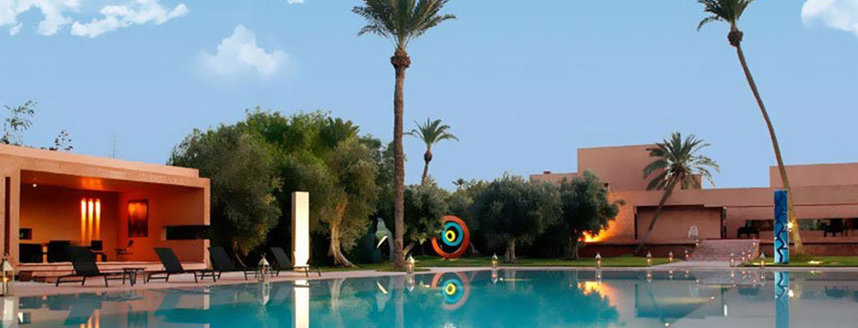 No coração da Palmeraie de Marrakech, Dar Sabranão é apenas um hotel de luxo mas um verdadeiro hotel de charme e design contemporâneo dedicado à arte, à cultura e ao bem-estar, propriedade de François Chapoutot, um amante e grande coleccionador de arte moderna e etnográfica. Instalado num parque com dois hectares no qual se revelam dezenas de esculturas contemporâneas entre oliveiras centenárias, Dar Sabra é um hotel devotado à arte contemporânea: numa magistral mise en scène, o diálogo é permanente entre a arquitectura cubista futurista e as esculturas contemporâneas.François Chapoutot pensou em fazer do lugar a sua casa. Mas o destino revelou-se noutras ideias, e o Dar Sabra transformou-se num hotel com um privilegiado parque para a colecção de arte contemporânea que François foi construíndo ao longo de cinquenta anos.O hotel tem 23 quartos e duas villas, com todo o conforto e ameneties dos mais modernos quartos de hotéis.Dar Sabra conta ainda comquatro imensas piscinas, dois restaurantes (um restaurante de Verão, aberto sobre o jardim de oliveiras e a piscina, e sala de jantar da casa principal, com uma grande lareira para as noites de Inverno), um salão marroquino, uma biblioteca, um salão com lareira, sala de bridge, sala home cinema (com mais de 300 filmes disponíveis), um bar, um court de ténis e uma tenda tradicional com um imenso tapete berbere.As refeições - sejam requintada gastronomia europeia, asiática ou as típicas méchouis, tajines ou tangia marroquinas - podem ser tomadas na suite, na sala de jantar, nos salões, no restaurante de Verão ou na tenda tradicional.Para além de um fitness center completamente equipado, oferece ainda um spa, sala de descanso e piscina jacuzzi, dois hammams, duas salas de massagem e um espace soins et beauté.