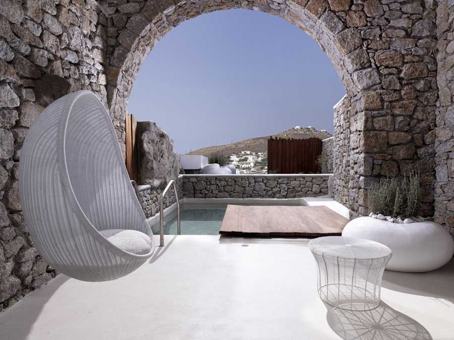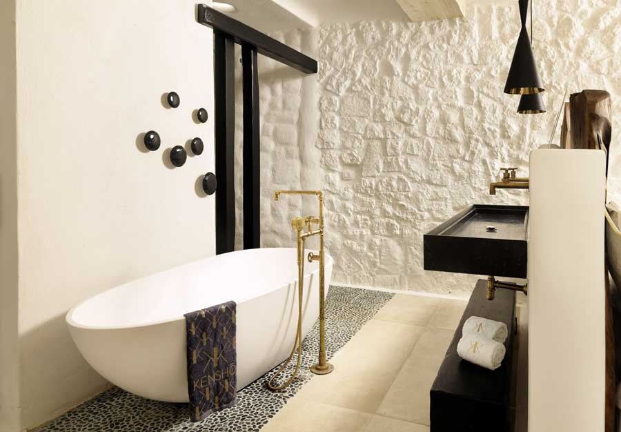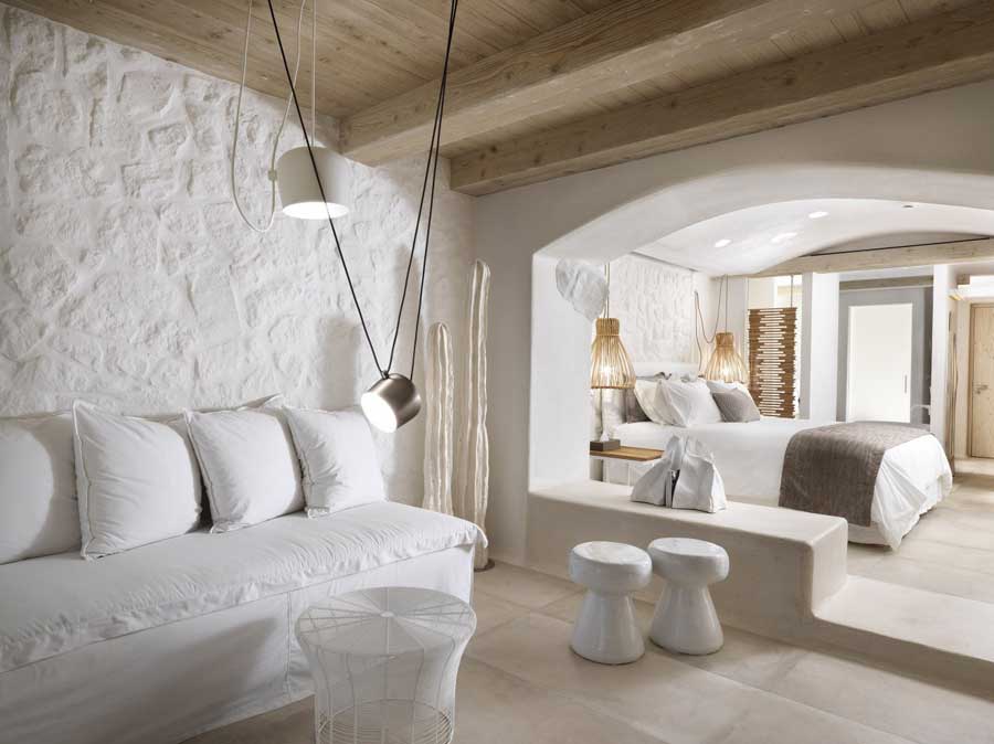 Numa ilha cheia de casas brancas arquetípicas, Kensho deve ser uma das mais belas, graças à sua conquista contemporânea do Cycladic chic. As paredes caiadas e o chão em pedra são complementados por madeira suave, paredes de pedra e decoração neutra, com arte moderna e design em toda a parte. Os flourishes artísticos, como lâmpadas de cobre polido, troncos de árvore e talheres em rosa dourado tornam-no no paraíso de um Instagrammer até ao último detalhe.