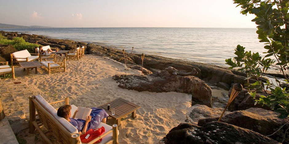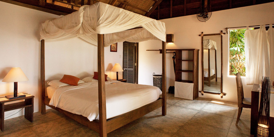 é um lugar metade selva, metade Família Robinson, e totalmente descontraído.Mango Bay, na costa centro-oeste de Phu Quoc, fica a uma curta distância das ilhas da cidade principal, mas parece a quilómetros de distância.Cercado por uma natureza em todo o seu esplendor, é bastante provável que veja uma vaca em frente à janela do seu quarto e mais do que certo ouvir o canto dos pássaros e a serenata das cigarras durante o dia.Originalmente construído como um retiro de fim de semana privado por três "exilados" que vivem em Ho Chi Minh, Mango Bay é agora uma aldeia de cabanas, bungalows e pequenas casas (rústicas q.b.) espalhadas por um jardim selvagem que desce num suave declive até ao mar - 7 no total. O seu sucesso reside nesta complementaridade entra a natureza que o rodeia e um hotel que quase não parece um hotel - e, ainda, os funcionários são simpáticos e informais.é, definitivamente, um refúgio ideal para descansar da exuberante energia de Ho Chi Minh, e os seus encantos simples atraem amigos, famílias e casais. Não é para todos, pois o apelo da natureza é forte, mas vale a pena a experiência.O hotel oferece ainda uma excelente cozinha de fusão, internacional e vietnamita, ou não fosse a ilha de Phu Quoc um paraíso de peixe e mariscos; e um spa com produtos e tratamentos cem por cento naturais.
